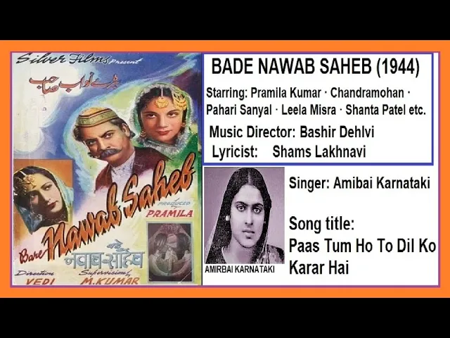 Bade Nawab Saheb : Lyrics and video of Songs from the Movie Bade Nawab Saheb (1944)