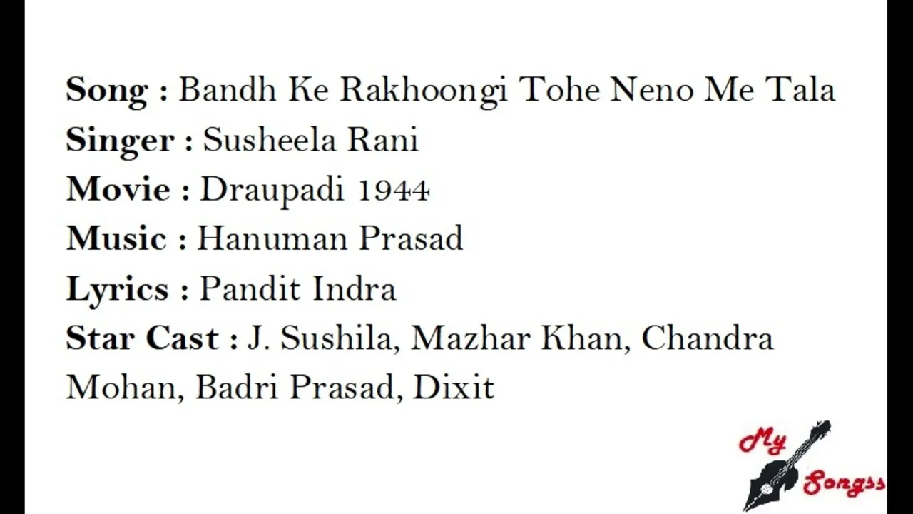 Draupadi : Lyrics and video of Songs from the Movie Draupadi (1944)