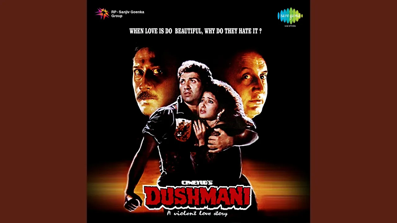 Film CastJackie Shroff, Sunny Deol, Manisha Koirala, Deepti Naval, Anupam Kher, Manohar Singh, Raghuveer Yadav, Dina Pathak, Ashok Banthia, Neena Gupta, Varsha Usgaonkar, Amrit Pal, Pradeep Rawat, Vikas Anand, Vishwajeet Pradhan, Madhu MalhotraSingerAmit Kumar, Anand, Kavita Krishnamurthy, Kumar Sanu, S.P.Balasubramaniam, Sadhana Sargam, Sapna Awasthi, Udit NarayanLyricistSameerMusic ByAnand Chitragupt, Milind ChitraguptDirectorBunty Soorma, Shekhar KapurProducerAli Morani, Bunty Soorma, Karim MoraniExternal LinksDushmani at IMDB Dushmani at Wikipedia