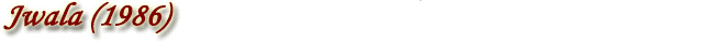 | Film cast: | Shatrughan Sinha, Anita Raaj, Suresh Oberoi, Puneet Issar, Madhavi, Goga Kapoor, Kamal Kapoor, Ram Mohan, Narendra Nath, Gita Siddharth | | Singer: | Asha Bhosle, Kavita Krishnamurthy, Devaki Pandit | | Lyricist: | Sudarshan Faakir, Vinod Sharma, S H Bihari | | Music Director: | Jagjit Singh | | Film Director: | Sudesh Issar | | Film Producer: | Aratn Mohan | | External Links: | Jwala at IMDB |