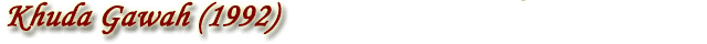 | Film cast: | Amitabh Bachchan, Sridevi, Nagarjuna, Shilpa Shirodkar, Kiran Kumar, Danny Denzongpa, Vikram Gokhale, Anjana Mumtaz, Beena, Bharat Kapoor, Shammi, Deepak Shirke, Anjan Srivastava, Vikas Anand, Ali Khan, Surendra Pal, Baby Tabassum | | Singer: | Alka Yagnik, Amitabh Bachchan, Kavita Krishnamurthy, Lata Mangeshkar, Mohammad Aziz, Suresh Wadkar | | Lyricist: | Anand Bakshi | | Music Director: | Laxmikant Kudalkar, Pyarelal | | Film Director: | M S Anand | | Film Producer: | Manoj Desai, Nazir Ahmed | | External Links: | Khuda Gawah at IMDB Khuda Gawah at Wikipedia | | Watch Full Movie: | Khuda Gawah at YouTube Khuda Gawah at YouTube |