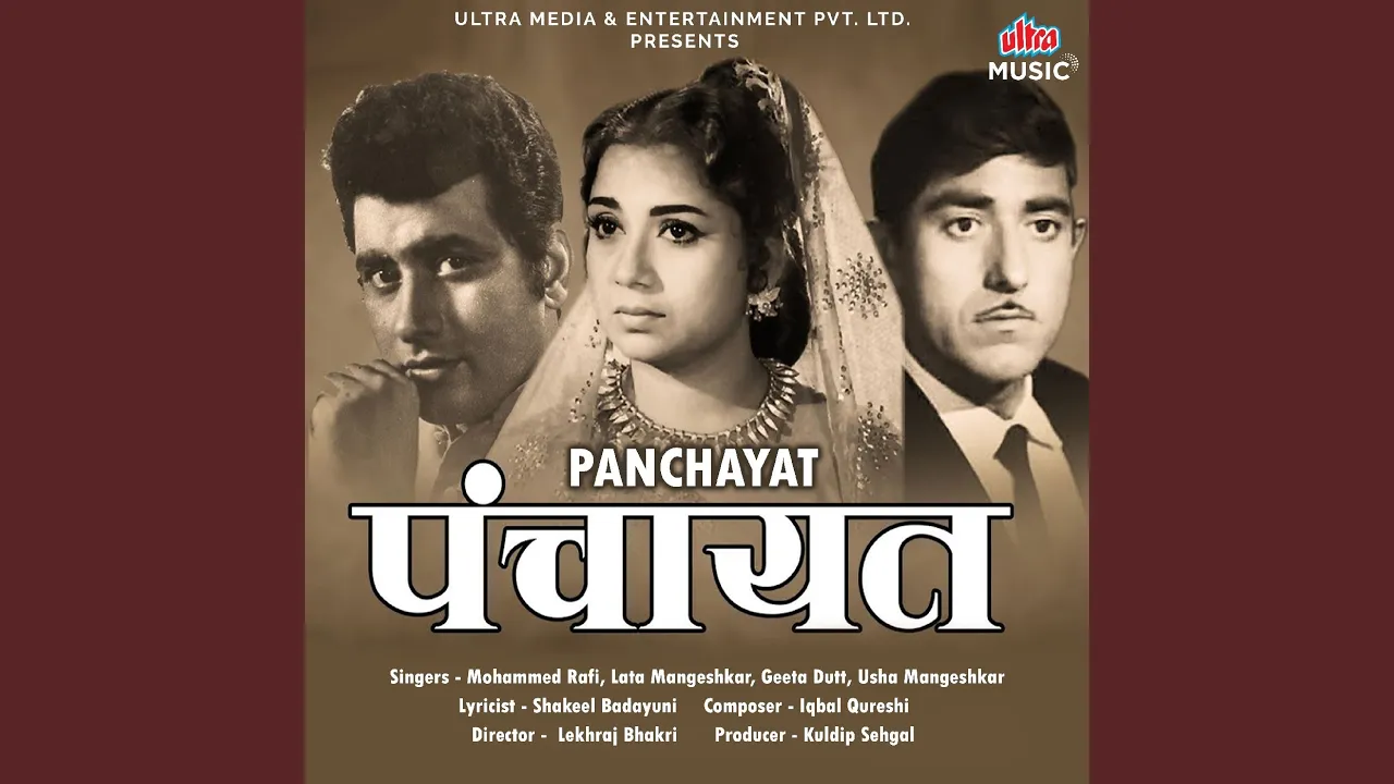 Film CastRaj Kumar, Pandari Bai, Shyama, Kanhaiya Lal, Ganga Ram, Jabben Jalil, Kuldip Kaur, Nasir Hussain, Manoj Kumar, Manorama, Leela Mishra, Sunder, Ranjana Shukla, Altaf, Amir Bano, Narbada Shankar, Kardar, Daisy IraniSingerMohammed Rafi, Geeta Dutt, Lata Mangeshkar, Usha MangeshkarLyricistShakeel NomaniMusic ByIqbal QureshiDirectorLekhraj BakshiExternal LinksPanchayat at IMDB YouTubePanchayat at YT Panchayat at YT(2)