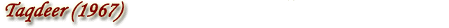 | Film cast: | Bharat Bhushan, Farida Jalal, Shalini, Kajal, Shushil, Jalal Aga, Johnny Walker, Kamal Kapoor, Agha, Ajay, Dinesh, Subhash Ghai | | Singer: | Lata Mangeshkar, Mahendra Kapoor, Meena, Mohammed Rafi, Sulakhshana Pandit, Usha Mangeshkar | | Lyricist: | Anand Bakshi | | Music Director: | Laxmikant Kudalkar, Pyarelal | | Film Director: | A Salaam | | Film Producer: | Tarachand Barjatya | | External Links: | Taqdeer at IMDB Taqdeer at Wikipedia | | Watch Full Movie: | Taqdeer at YouTube Taqdeer at YouTube |