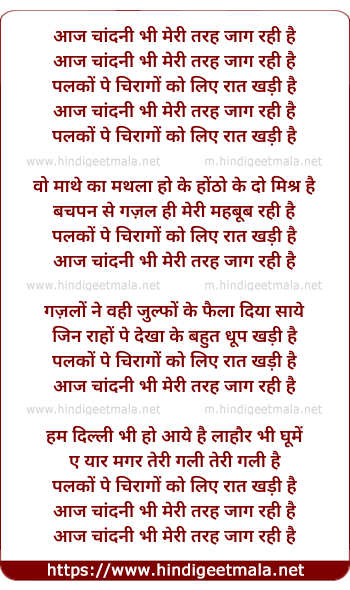 Lyrics of Aa Chandani Bhi Meri Tarah Jaag Rahi Hai - आज चांदनी भी मेरी तरह जाग रही है