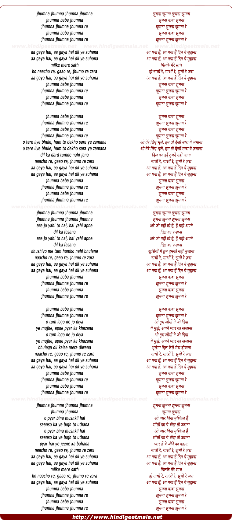 Lyrics of Aa Gaya Hai Aa Gaya Hai - झूमना झूमना झूमना झूमना