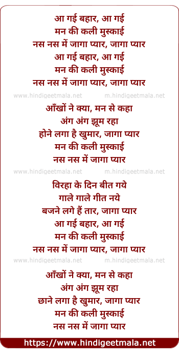 Lyrics of Aa Gayee Bahar Aa Gayee - आ गई बहार, आ गई