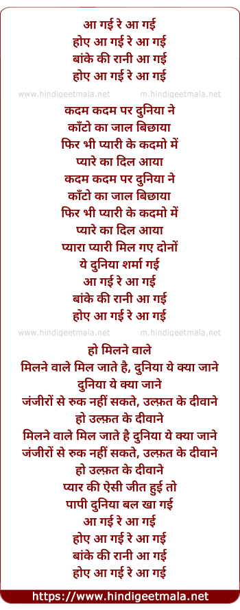 Lyrics of Aa Gayi Re Aa Gayi - आ गई रे आ गई