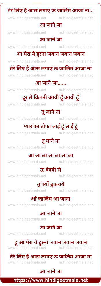 Lyrics of Aa Jaan-e-jaan - आ जान -इ-जान