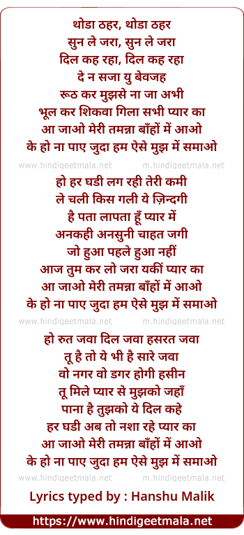 Lyrics of Aa Jaao Meri Tamanna Baaho Me Aao - आ जाओ मेरी तमन्ना बाँहों में आओ