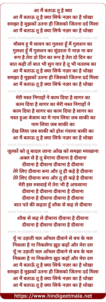 Lyrics of Aa Main Bataun Tu Hai Kya Sirf Nazar Ka Hai Dhokha - आ मैं बताऊ तू है क्या सिर्फ नज़र का है धोखा
