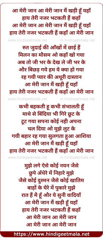 Lyrics of Aa Meri Jaan Main Khadi Hu Yaha - आ मेरी जान मैं खड़ी हूँ यहाँ