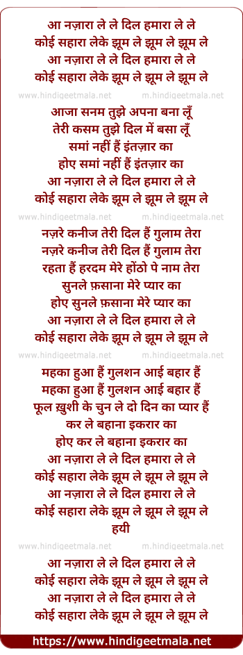 Lyrics of Aa Nazara Le Le Dil Humara Le Le - आ नज़ारा ले ले दिल हमारा ले ले