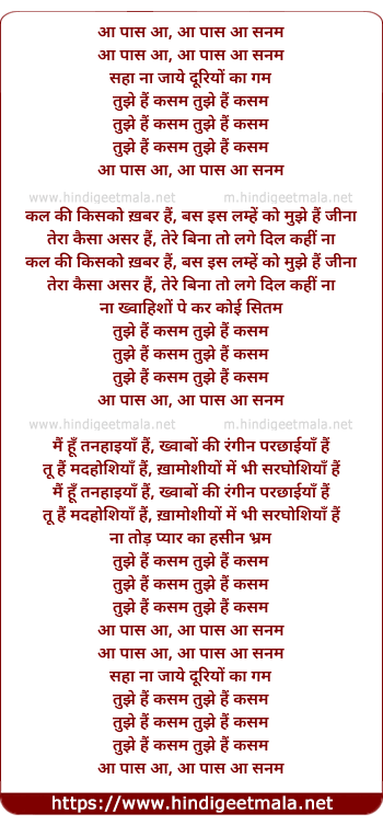 Lyrics of Aa Pas Aa Sanam - आ पास आ सनम