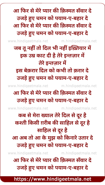 Lyrics of Aa Phir Se Mere Pyar Ki Kismat Sanwar De - आ फिर से मेरे प्यार की क़िस्मत सँवार दे