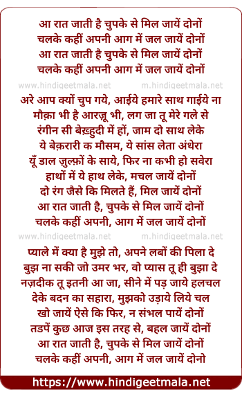 Lyrics of Aa Rat Jati Hai Chhupake Se Mil Jaye Dono - आ रात जाती है चुपके से मिल जायें दोनों