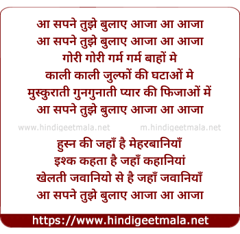 Lyrics of Aa Sapne Tujhe Bulaye - आ सपने तुझे बुलाए