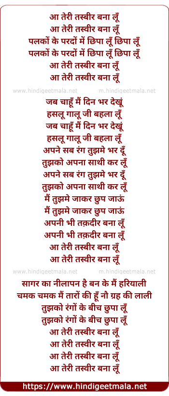 Lyrics of Aa Teri Tasvir Bana Lu - आ तेरी तस्बीर बना लूँ