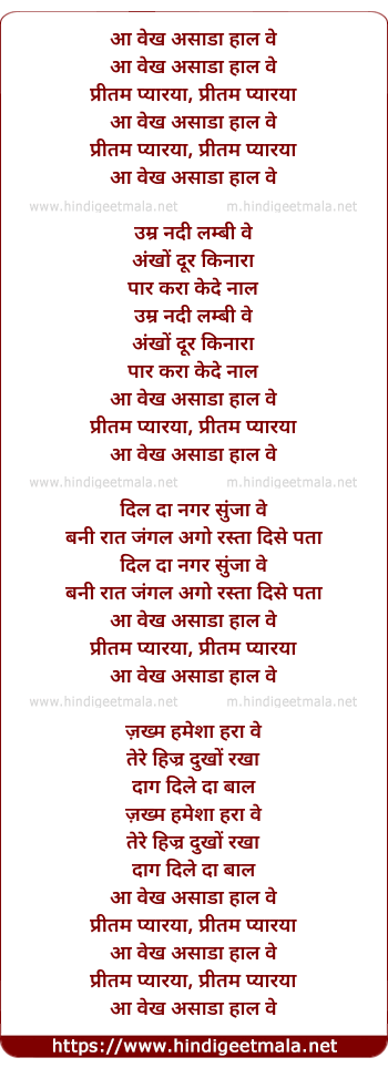 Lyrics of Aa Vekh Asaada Haal - आ वेख असाडा हाल वे