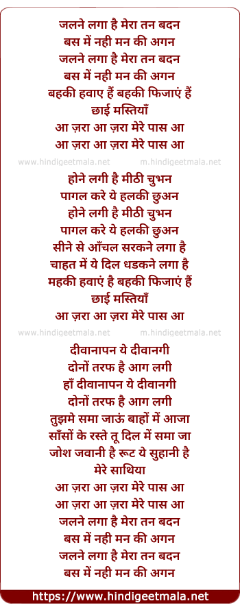 Lyrics of Aa Zara Aa Zara Aa Mere Paas Aa - आ ज़रा आ ज़रा मेरे पास आ