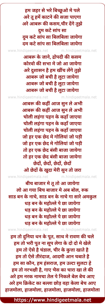 Lyrics of Aabroo Jo Bachi Hai Luta Jayega - आबरू जो बची है लुटा जायेगा
