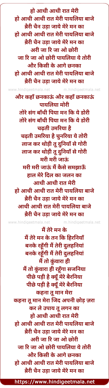 Lyrics of Aadhi Aadhi Raat Meri Payaliya Baaje - आधी आधी रात मेरी पायलिया बाजे