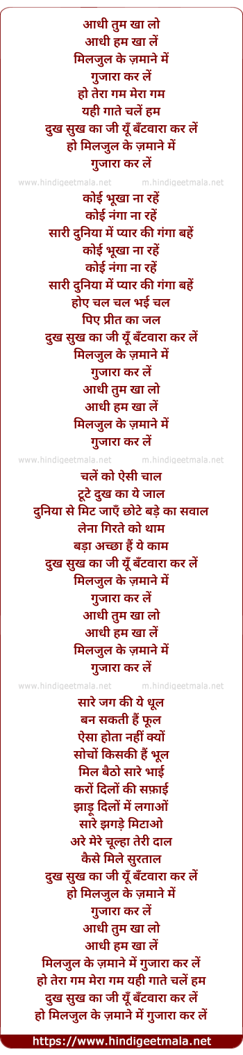 Lyrics of Aadhi Tum Kha Lo, Aadhi Ham Kha Le - आधी तुम खा लो,आधी हम खा ले