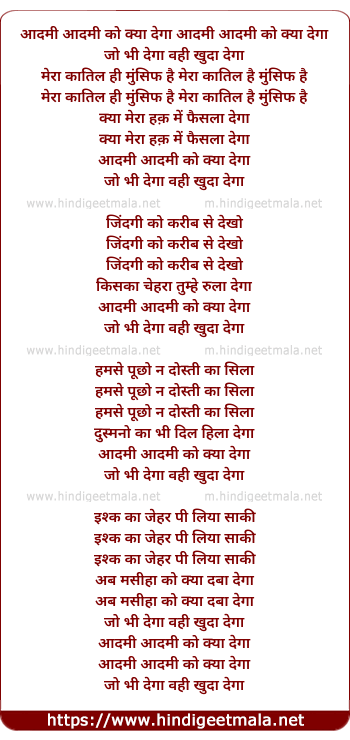 Lyrics of Aadmi Aadmi Ko Kya Dega Jo Bhi Dega Wahi Khuda Dega - आदमी आदमी को क्या देगा आदमी आदमी को क्या देगा
