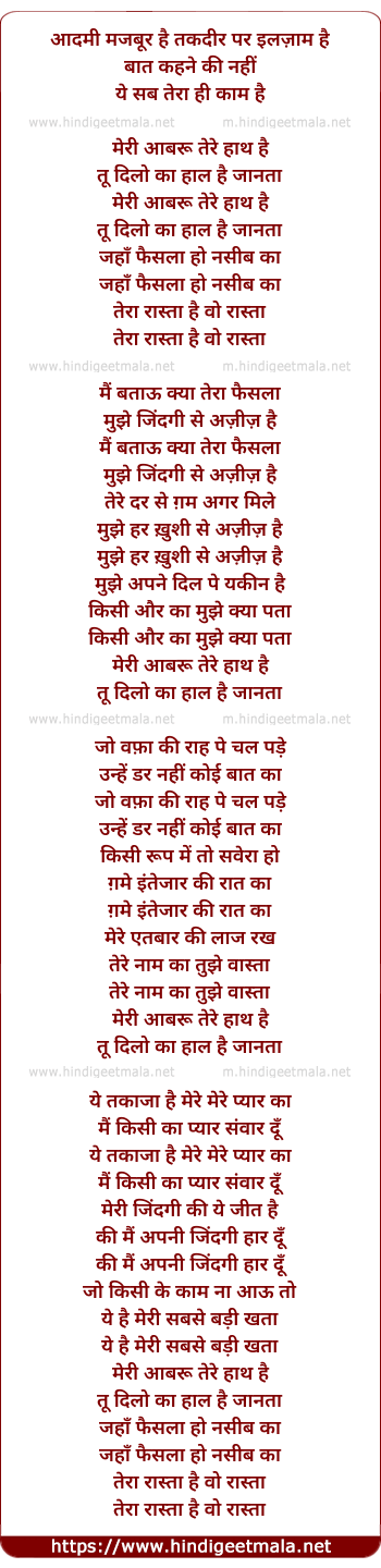 Lyrics of Aadmi Majboor Hai Taqdir Par Iljham Hai - आदमी मजबूर है तकदीर पर इलज़ाम है