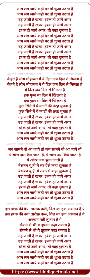 Lyrics of Aag Lag Jaye Kahi Par To Dhuan Uthta Hai - आग लग जाये कही पर तो धुँआ उठता है