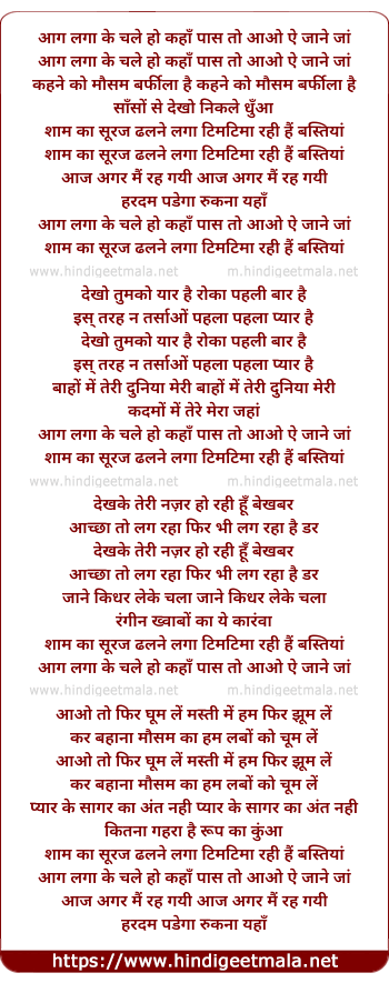 Lyrics of Aag Laga Ke Chale Ho Kaha - आग लगा के चले हो कहाँ