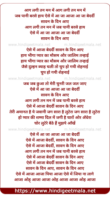 Lyrics of Aag Lagi Tan Man Me - आग लगी तन मन में