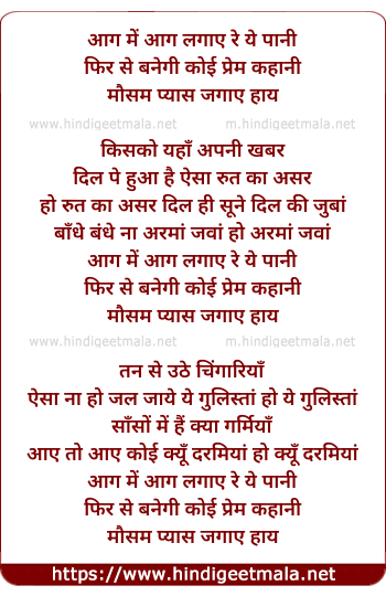 Lyrics of Aag Me Aag Lagaye Ye Pani - आग में आग लगाए ये पानी