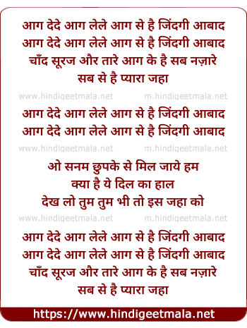 Lyrics of Aag (Nazia Hassan) - आग देदे आग लेले आग से है जिंदगी आबाद