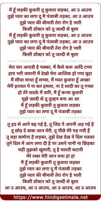 Lyrics of Main Hu Ladaki Kunvari Tu Kuwara Ladka - मैं हूँ लड़की कुवारी तू कुवारा लड़का
