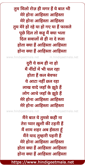 Lyrics of Aahista Aahista - आहिस्ता आहिस्ता