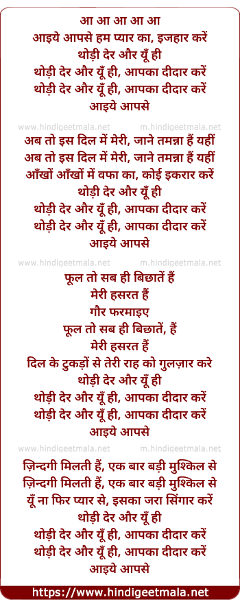 Lyrics of Aaiye Aapse Ham Pyaar Ka, Ijhaar Kare - आइये आपसे हम प्यार का, इजहार करें