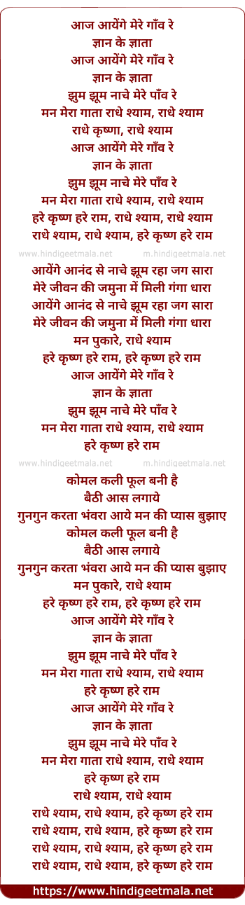 Lyrics of Aaj Aayenge Mere Gaon Re - आज आयेंगे मेरे गाँव रे
