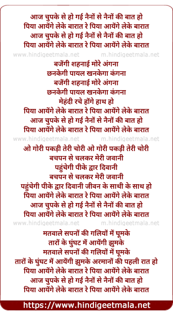aaj chupke se ho gayi naino se naino ki baat ho