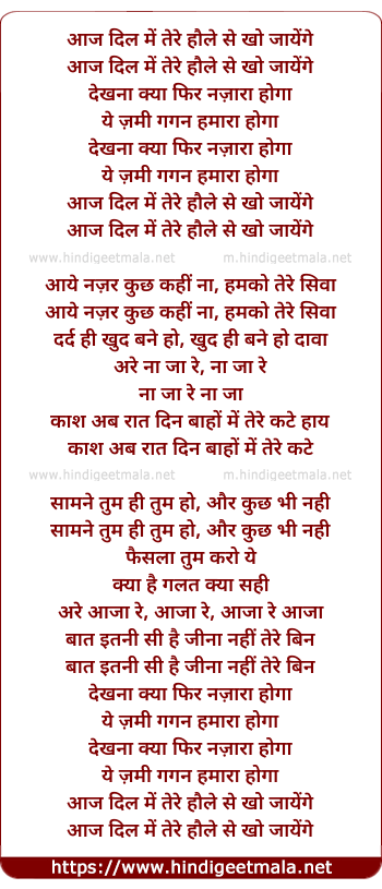 Lyrics of Aaj Dil Me Tere Hole Se Kho Jayege - आज दिल में तेरे हौले से खो जायेंगे