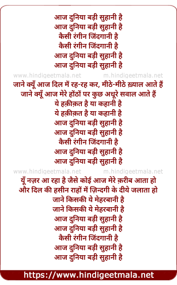 Lyrics of Aaj Duniya Badee Suhaanee Hai - आज दुनिया बड़ी सुहानी है