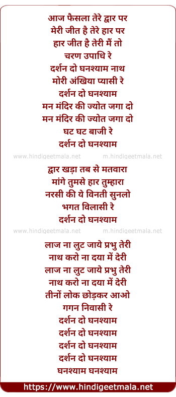 Lyrics of Aaj Faisla Tere Dwar - आज फैसला तेरे द्वार