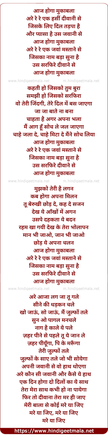 Lyrics of Aaj Hoga Muqabla - आज होगा मुकाबला