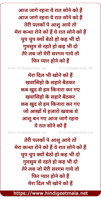 Lyrics of Aaj Jage Rehna - आज जगे रहना