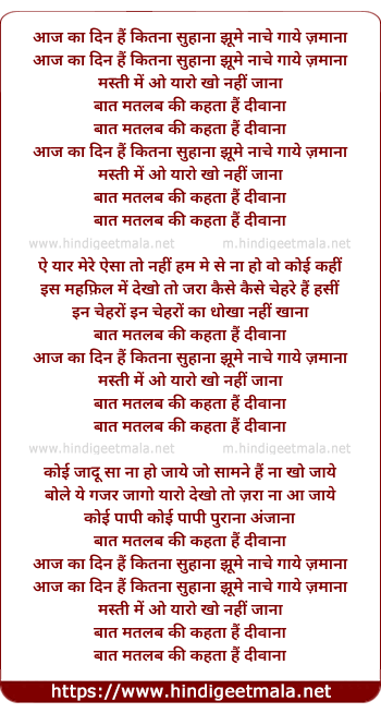 Lyrics of Aaj Ka Din Hai Kitna Suhana - आज का दिन हैं कितना सुहाना