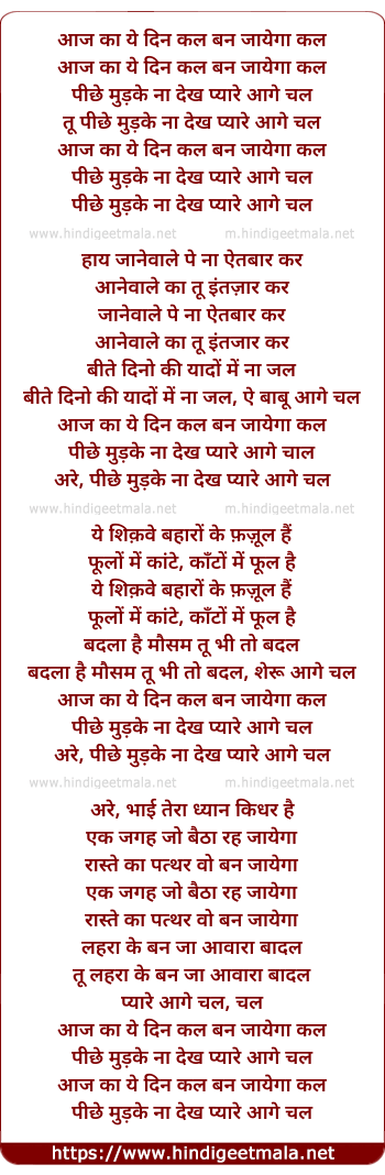 Lyrics of Aaj Ka Ye Din Kal Ban Jayega Kal - आज का ये दिन कल बन जायेगा कल