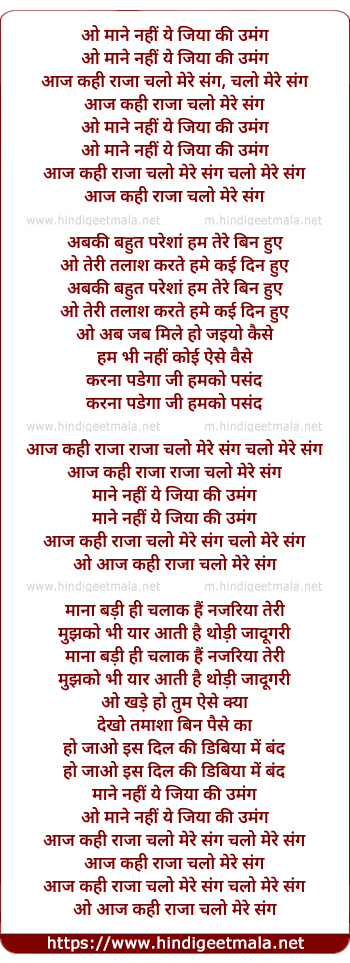 Lyrics of Aaj Kahi Raja Chalo Mere Sang - आज कहीं राजा चलो मेरे संग