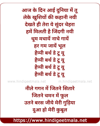 Lyrics of Aaj Ke Din Aayi Duniya - आज के दिन आई दुनिया