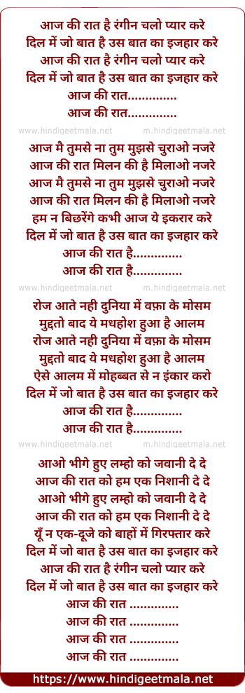 Poetic Translation - Lyrics of Aaj Kei Raat - आज की रात