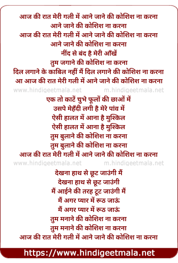 Lyrics of Aaj Ki Raat Meri Gali Me - आज की रात मेरी गली में