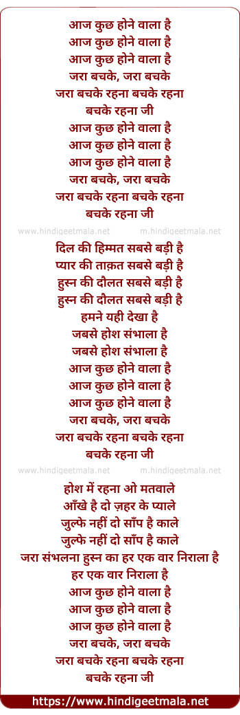 Lyrics of Aaj Kuchh Hone Wala Hai - आज कुछ होने वाला है